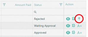 The "A+" icon shown on the Action column (see Figure 3.1 below) allows you to add or replace the receipts you've uploaded. When you click the "A+" icon, the system will prompt you (see Figure 3.2 below) if you want to add or replace the existing receipts.